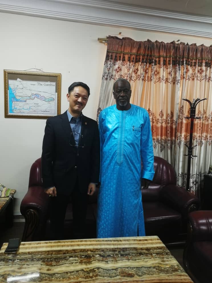 Nov 2019 ,AMBASSADOR - AT - LARGE OF GAMBIA IN SOUTH EAST ASIA - Tan Sri Dr. Aixinjueluo Yuhao JP met Minister of Lands and Regional Government of The Gambia,Musa Drammeh .